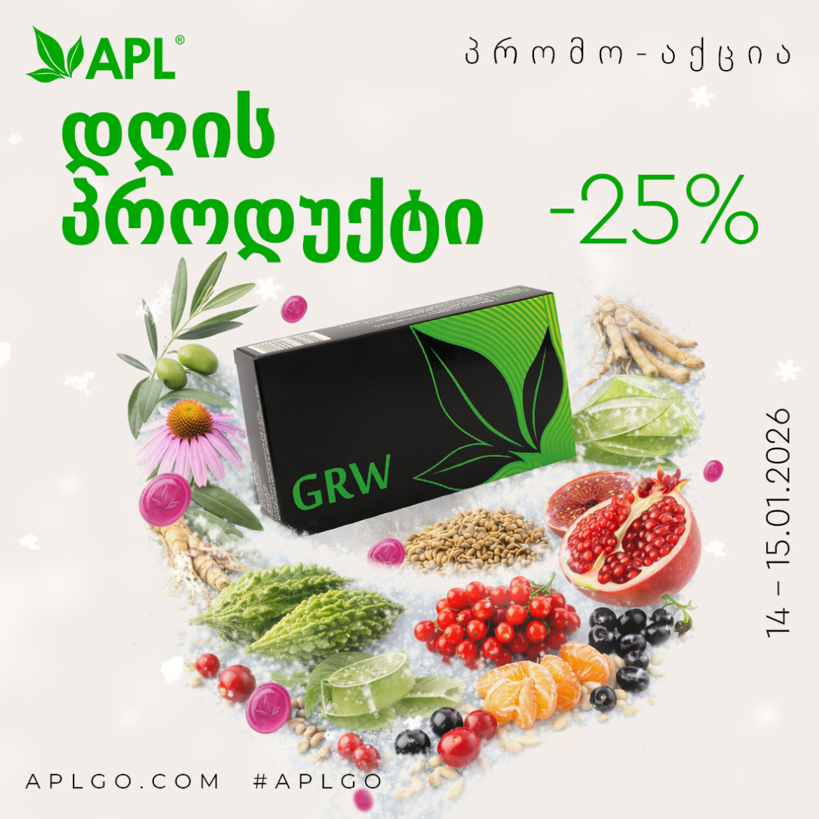 თქვენი ბუნებრივი დაცვა შეიძლება უფრო ძლიერი იყოს, რას იტყვით? GRW უბრალოდ ყინულკარამელი არ არის — ეს დაბალანსებული კომპლექსია ორგანიზმის გასაძლიერებლად. თქვენი ჯანმრთელობის, ენერგიისა და გამძლეობის წყარო. ახლა განსაკუთრებული სარგებლით — 25%!