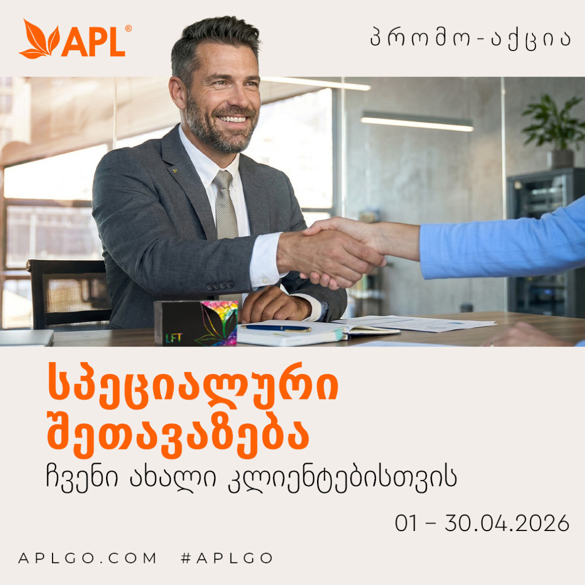 გაზაფხული ახალი შესაძლებლობების დროა და ჩვენ APL GO-ს სამყაროს კარს გიღებთ ისე, რომ ამისთვის ბილეთი არ გჭირდებათ! ახალ პარტნიორებს — აქტივაციის საფასურის სრული გაუქმება, ხოლო მათთვის, ვინც დიდი ხანია არ აქტიურობდა, დასაბრუნებლად საკმარისია შეკვეთის განთავსება. არ გამოტოვოთ შანსი, დაიწყოთ (ან განაგრძოთ) ბიზნესის განვითარება საწყისი ხარჯის გარეშე, სანამ ამ შესანიშნავი შესაძლებლობებისა და შეუჩერებელი რეკრუტერების თვე არ დასრულდება!